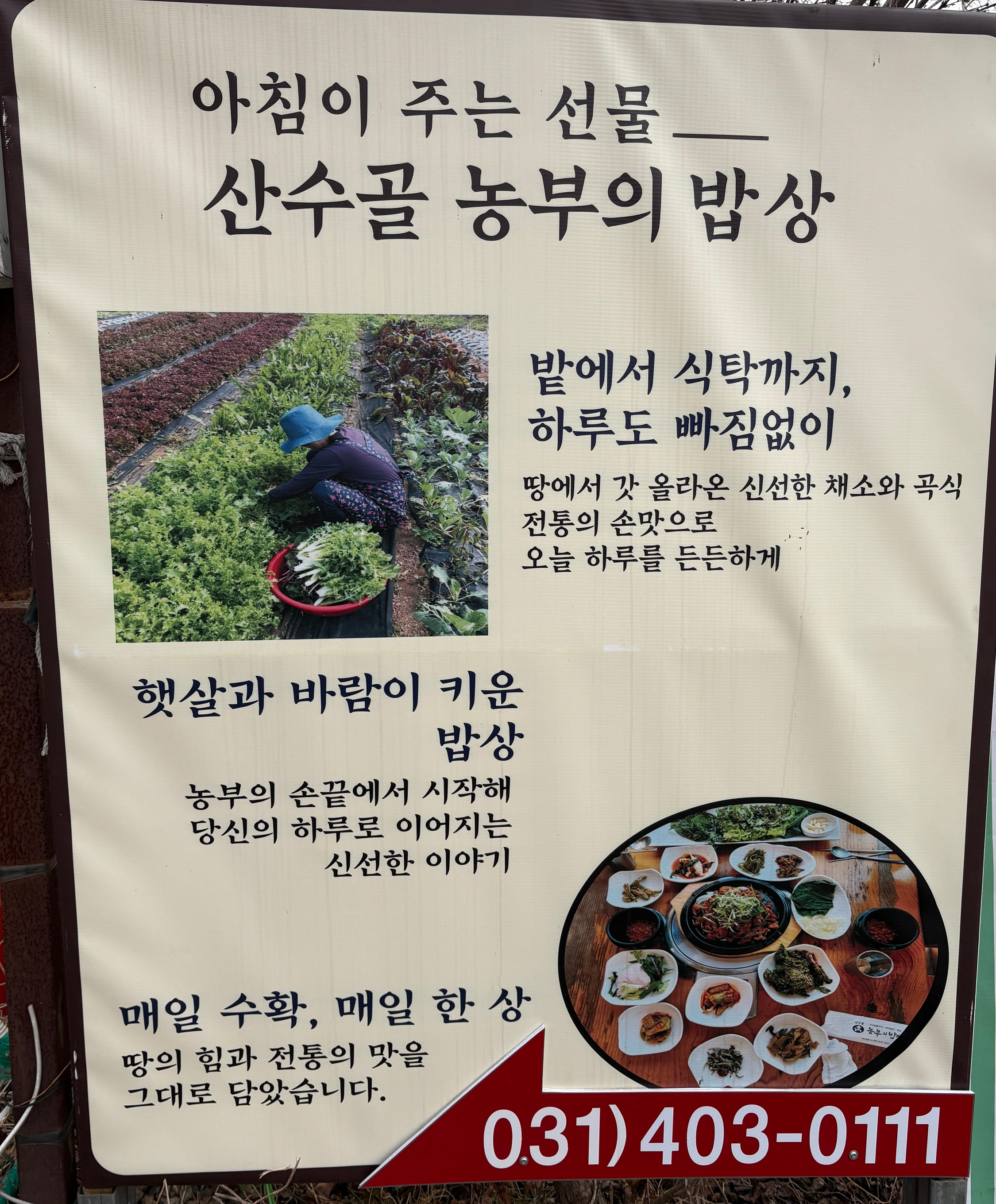 허름한 모습의 '산수골 농부의밥상'을 갔어요. 위치는 아래를 참고.