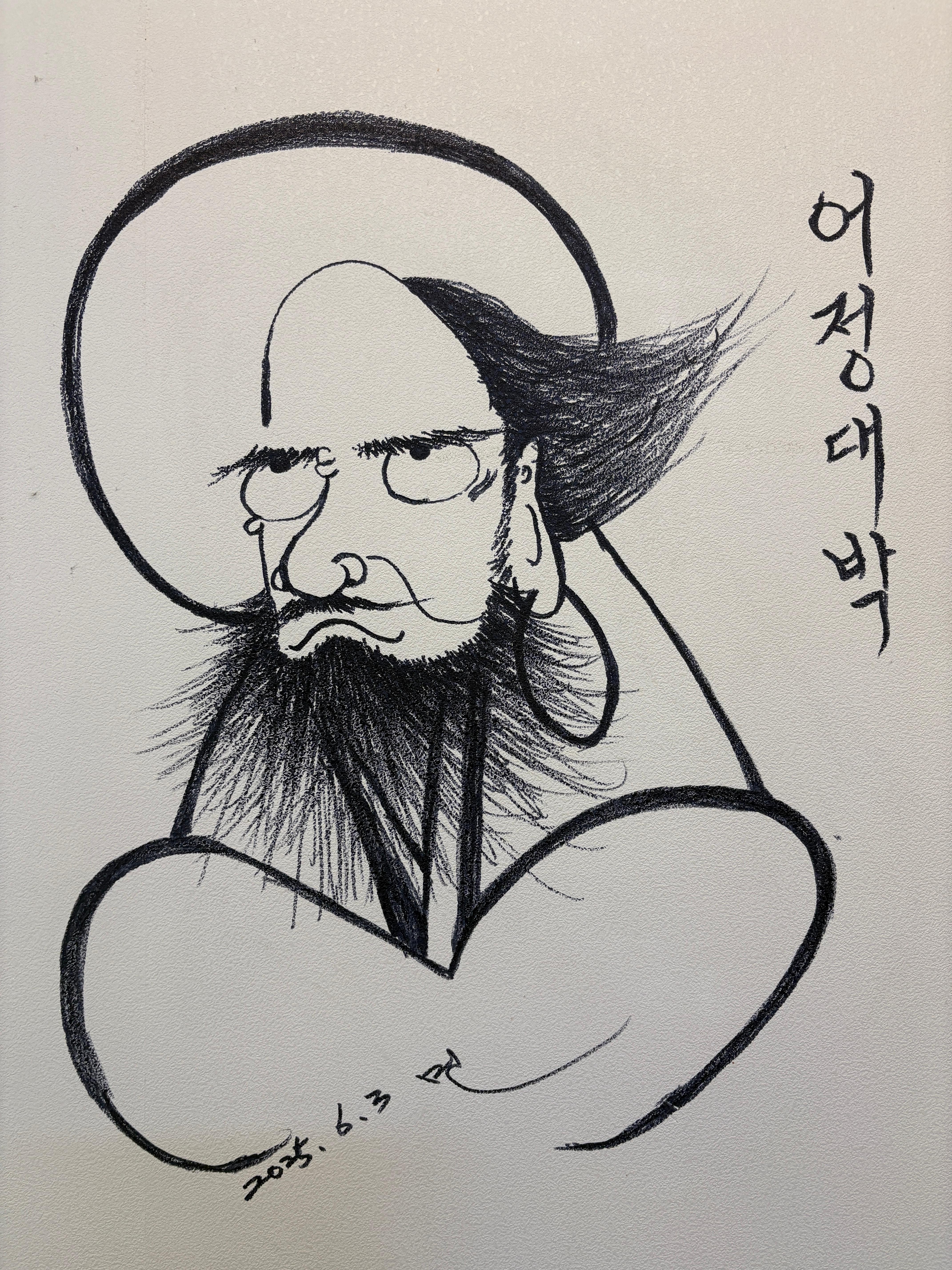 달마대사 비슷한데... 어정대사님이신가? 사장님 대박나시라고 '어정대박'이라고 누가 벽에 그린 것 같아요. 아무튼 어정대사의 기를 우리도 받겠습니다.