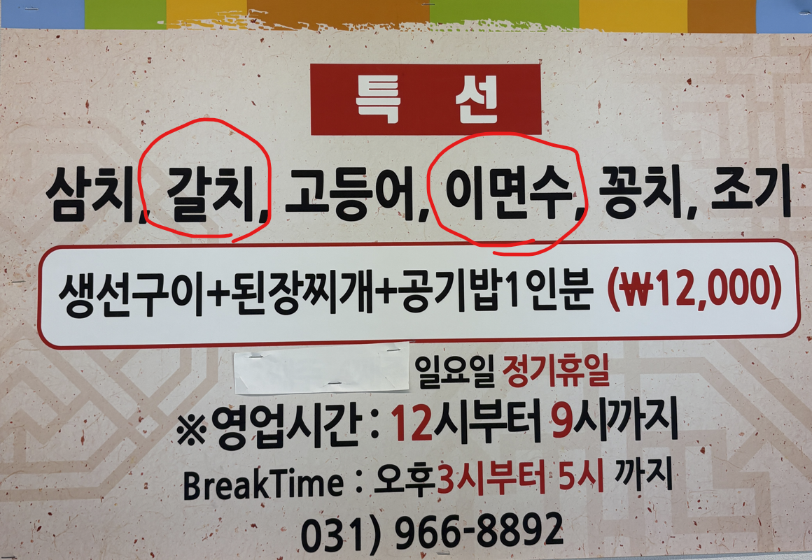 갈치와 이면수 점심 특선 주문!