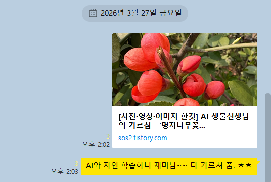 점심식사 후 산책 과정에서 AI 생물 선생님에게 질문!