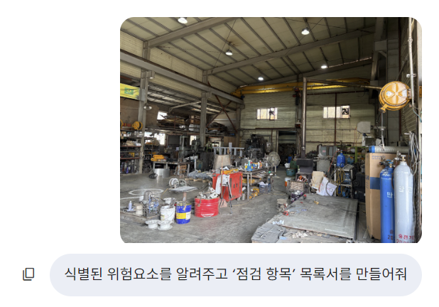 Prompt : 식별된 위험요소를 알려주고 ‘점검 항목’ 목록서를 만들어줘