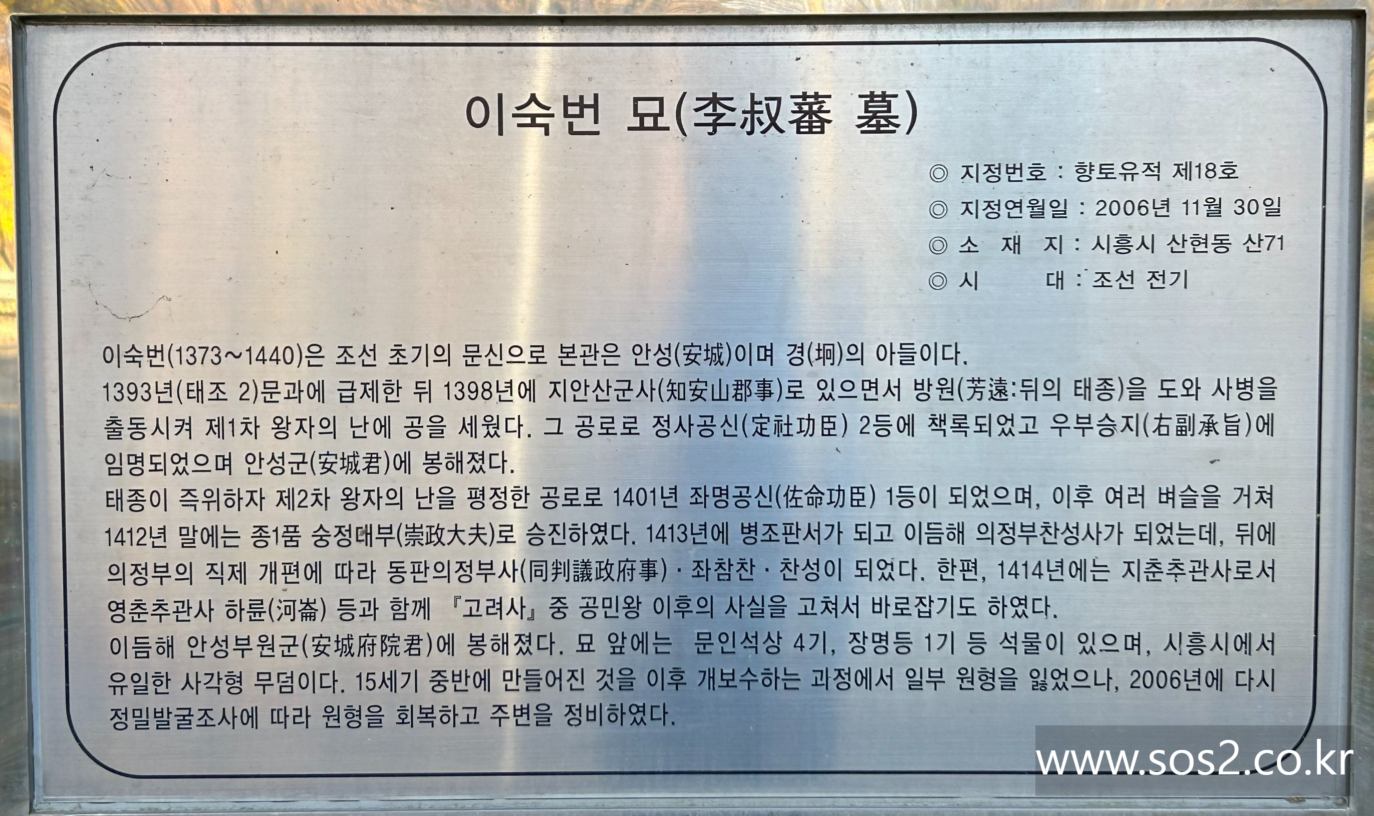지나는 길에 국사 시간에 배운 이숙번이란 이름이 생각이 나서 방문했어요. 공부 열심히 했나바요..^^ 아직도 기억이.