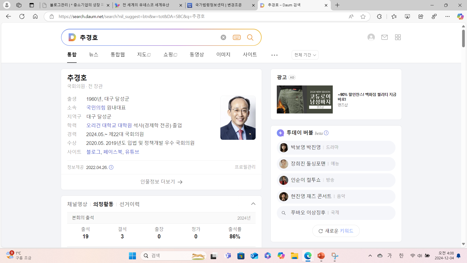 | [계엄령선포 1탄] 2024년 12월 03일 오후 11시, 윤석열대통령 계엄령 선포! 정당한가? (0) | 2024.12.04 |