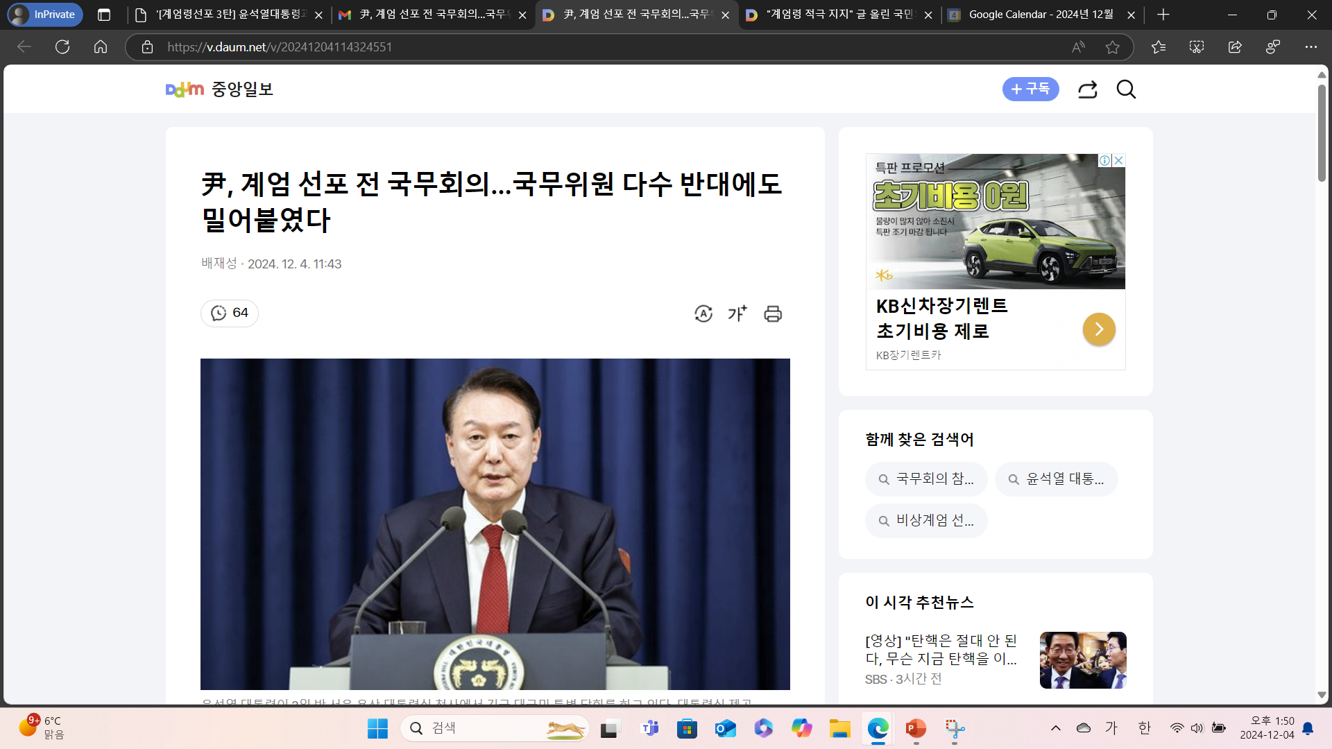| [계엄령선포 1탄] 2024년 12월 03일 오후 11시, 윤석열대통령 계엄령 선포! 정당한가? (0) | 2024.12.04 |