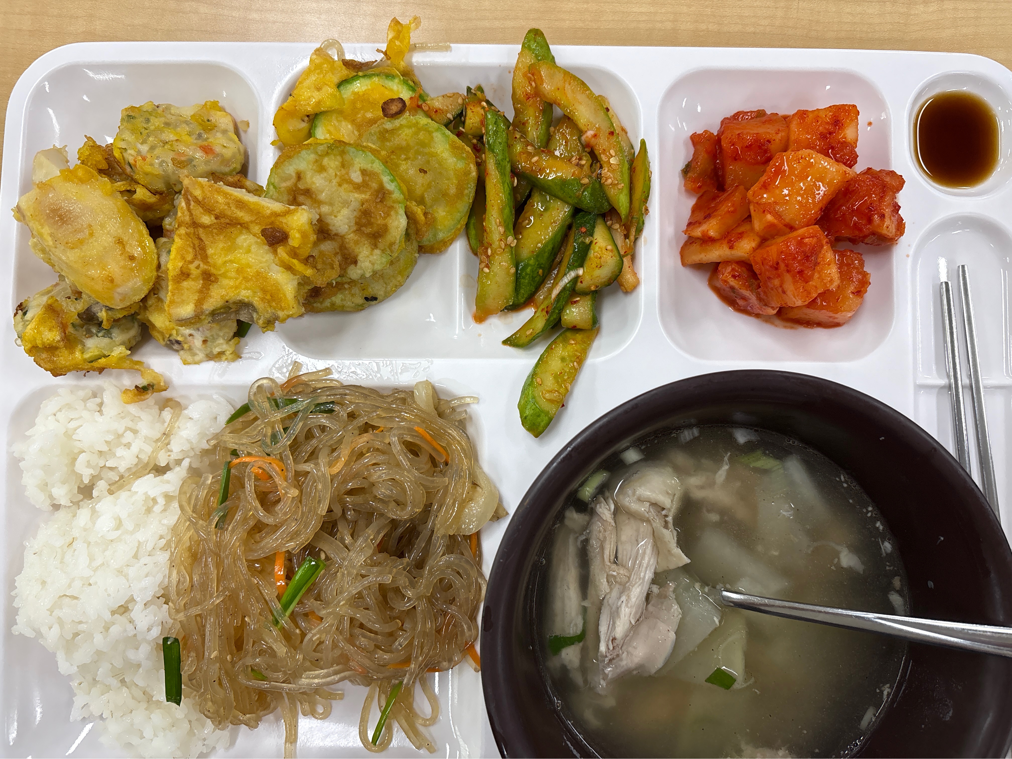 식단 구성 구성요소내용백미밥-영양닭곰탕닭가슴살잡채-모듬전류동그랑땡, 호박, 버섯도라지오이무침-깍두기- 식당 환경 영양사가 식단 관리!테이블 간격이 넉넉!위에서 에어콘이 빵빵! 그래서 얼마? 단돈 5천냥 ~~ ** 이 곳은 안산시 별관에 위치하고 있어요. 물론 식당 운영 업체에 보조금을 지원할 것도 같아요. 네이버나 구글의 구내 식당을 가보지 않아서 비교할 수는 없겠지만, 아무튼 난 5천원에 이런 수준의 한끼 식사를 하였으니 매우 흡족하네요~~^^ 내일은 광주시 곤지암으로 슬기로운 직생 방문 예정입니다. 곤지암 소머리국밥 ₩10,000 이상이겠죠?