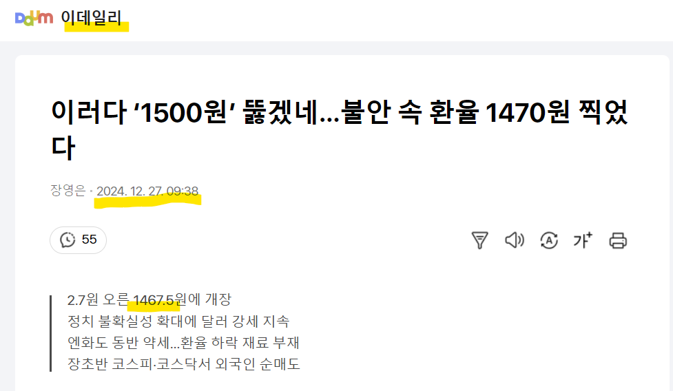 거바요! 환율오르지요? (2024년 12월 27일)