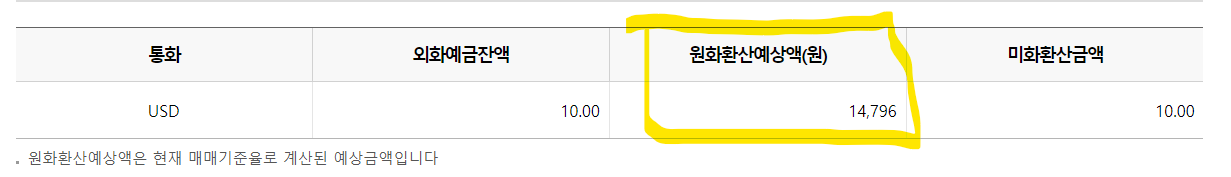 외화통장을 개설하고 US$10 입금