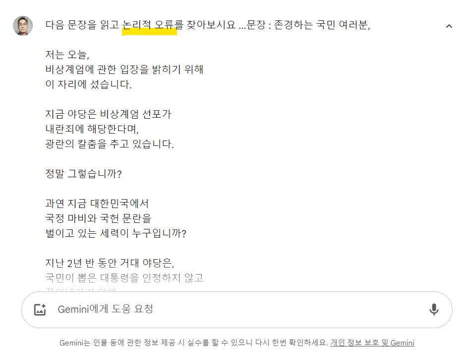 [계엄령선포 14탄] 윤석열 주장의 논리적 오류를 구글 AI Gemini 에게 물었다!