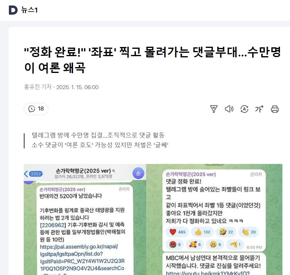 진보·보수 극성 지지자들을 중심으로 '댓글 작업'이 활발하게 이뤄지고 있다. 이른바 '좌표'를 찍고 몰려가 유리한 여론을 선점하는 식이다.