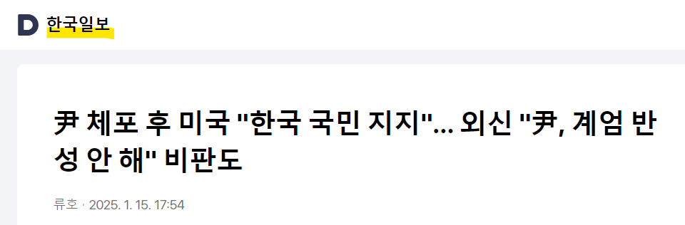 | 권영세 | "尹 체포영장 불법, 강제집행 명백한 범죄행위" [출처] 서영준2025. 1. 15. 08:54, 파이낸셜뉴스 |