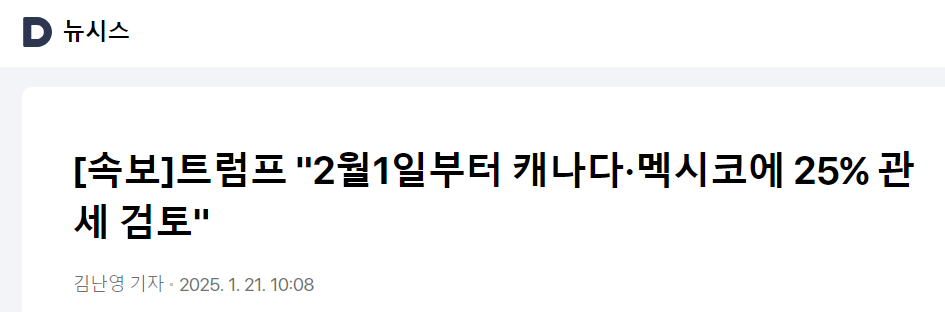 사례 1; 트럼프 "2월1일부터 캐나다·멕시코에 25% 관세 검토" - [출처] 뉴시스