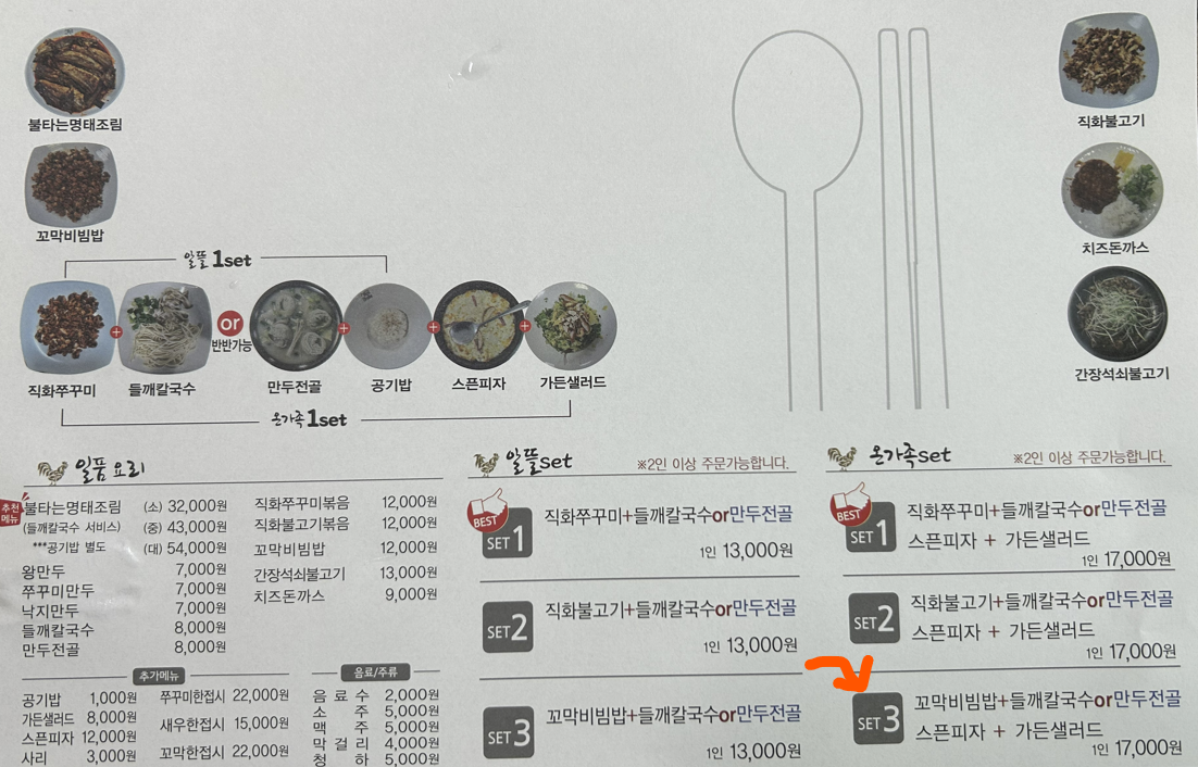** 오동통, 쫄깃, 매콤한 '꼬막비빔밥'과 걸쭉, 따끈, 들깨향이 나는 '들깨칼국수'가 조화롭게 어울여요.