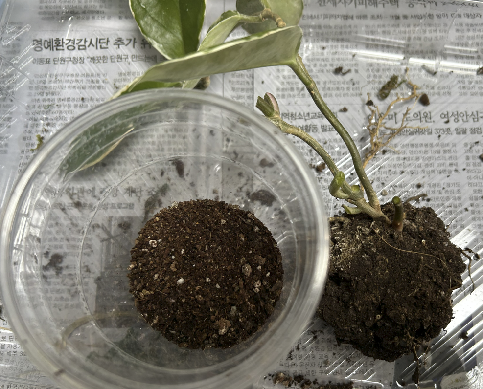 2단계 : 임시 병실(=화분)에 배치하고 새로운 흙 투입