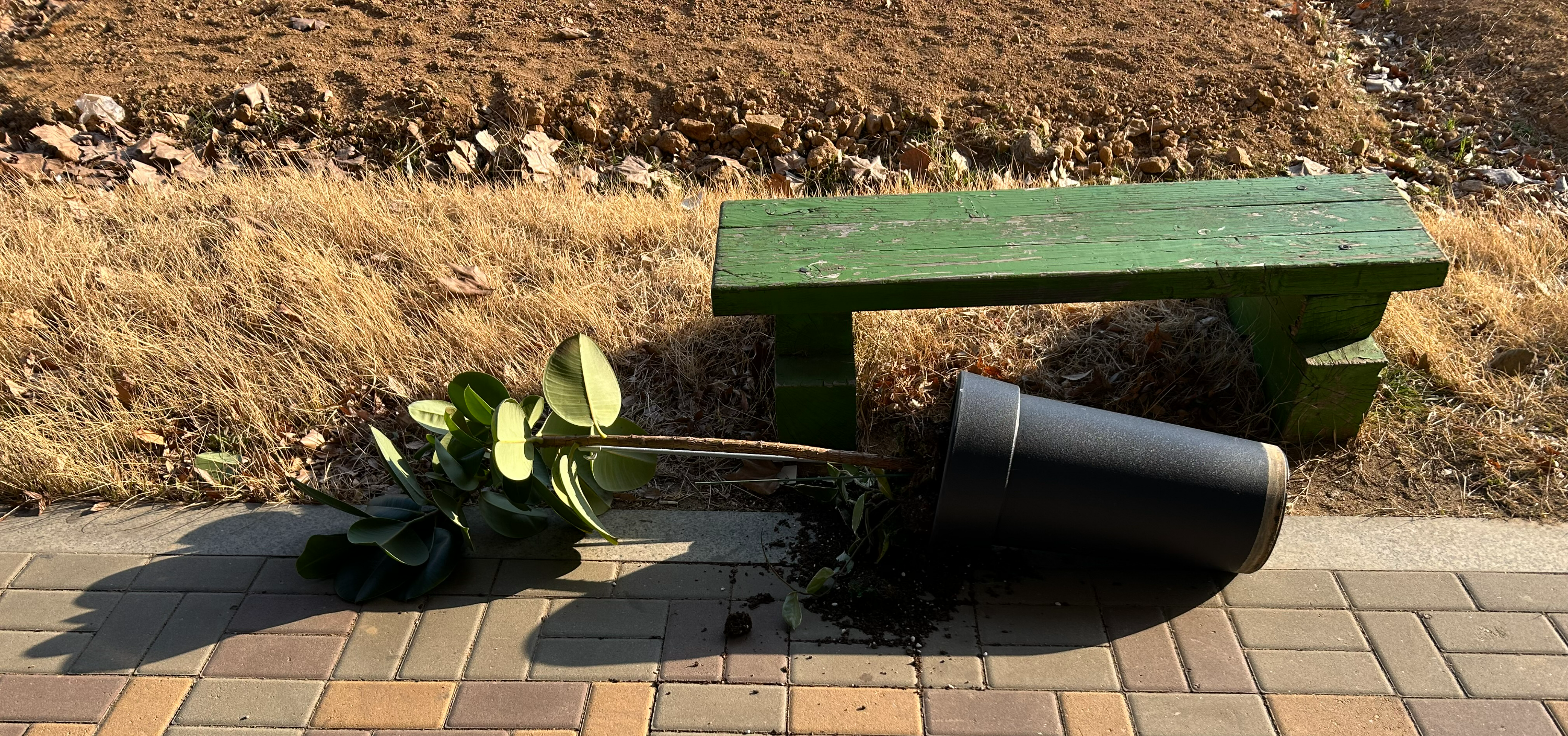 그런데 '호야'와 '고무나무'가 바람에 널부려져 있다. 버려진 것 같다. 나쁜 인간들. ㅠㅠ 그래서 일단 사무실로 데리고 왔다.
