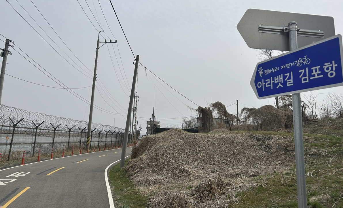 철조망이 있는 이유는? "내래 임진강 따라 북에서 왔수다!" '평화누리 자전거길' 이라고 되었네요.