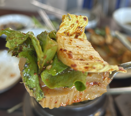 ** 양념이 짜거나 맵지는 않았어요. 따뜻한 밥 한 숟가락에 냉이 올린 다양한 조합의 것들을 함께 먹어볼 수 있어서 좋았어요. 다만 한국식당 늘 그러하 듯이 '화장실'이 영~~. 0.5 감점!