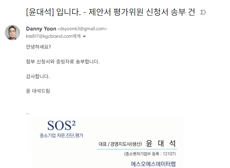 (뇌가 나에게) : 유통원 평가 참여 5개 실적 증빙을 첫번째로 올리고 이메일 내용에 혹하는 정보 작성을 해바~