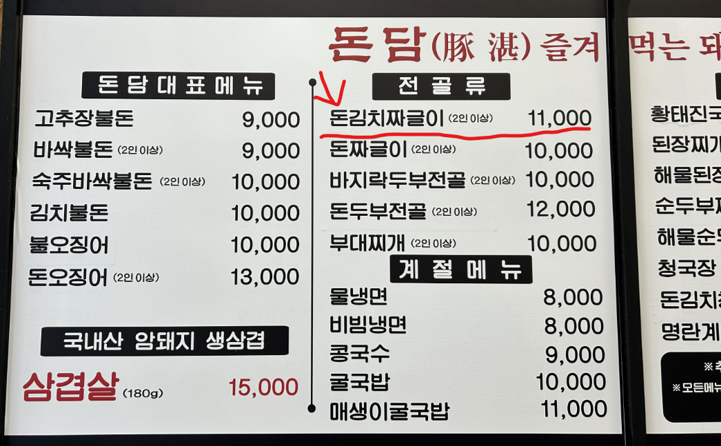 '돈담' 돈김치 짜글이