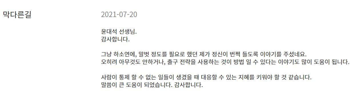 문의 : 그래도 그냥 이렇게 하소연이라도 한번 해보고 싶었습니다