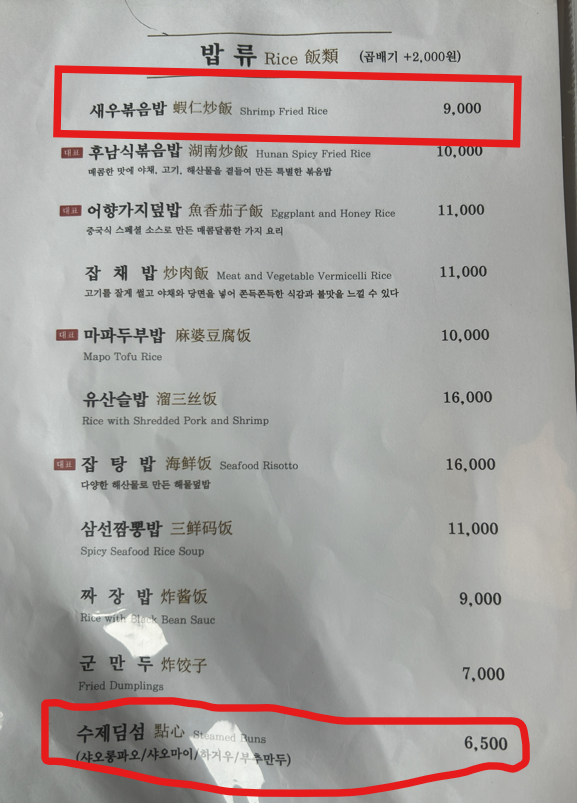 삼선간짜장면, 새우볶음밥 및 '수제딤섬' 주문했어요.