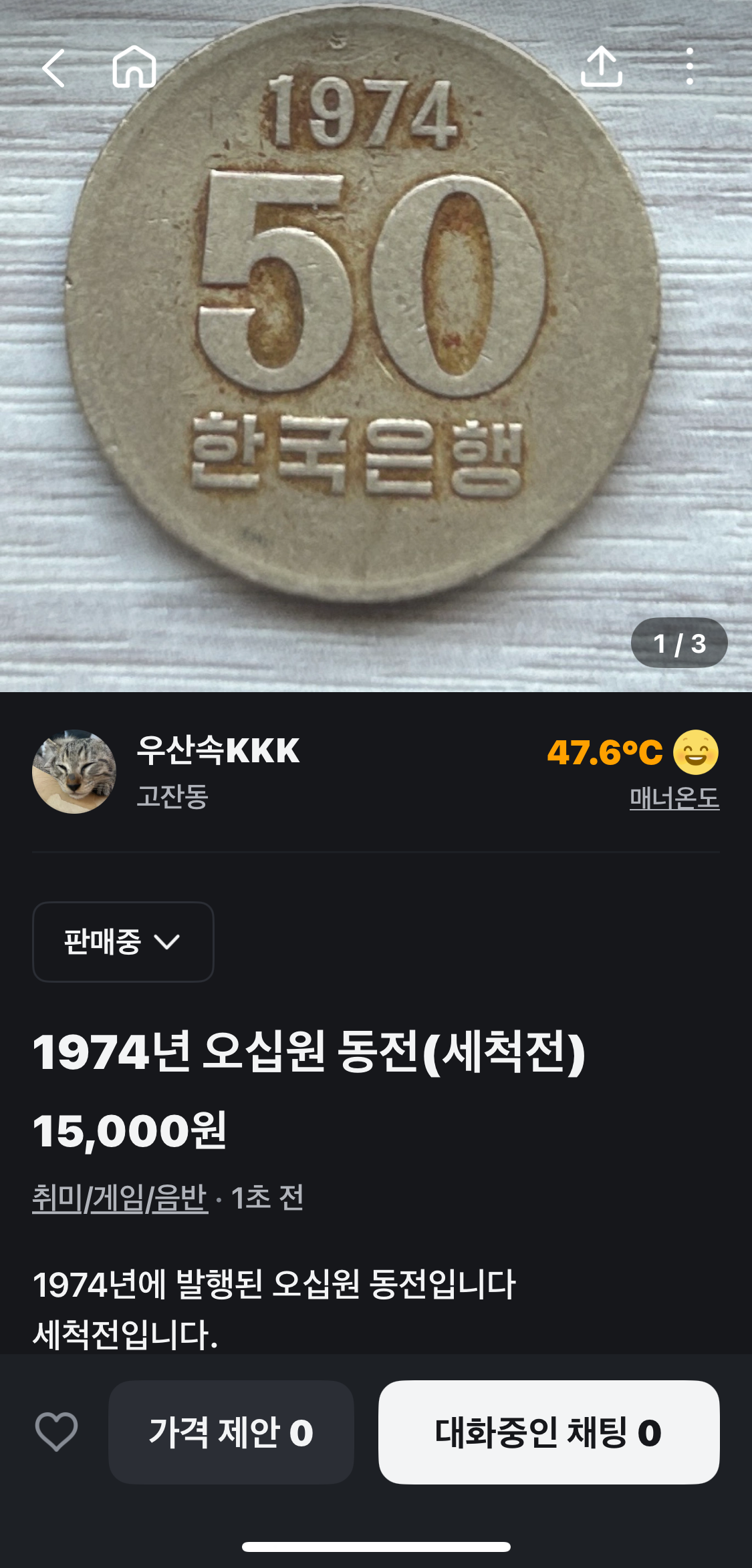 1974년도 발행 50원 동전 습득 - 당근마켓에 UPLOAD! 판매될까?^^