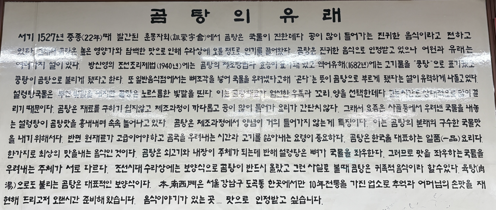 - 1527년 중종떄 발간된 '훈몽자회'에 곰탕 등장
