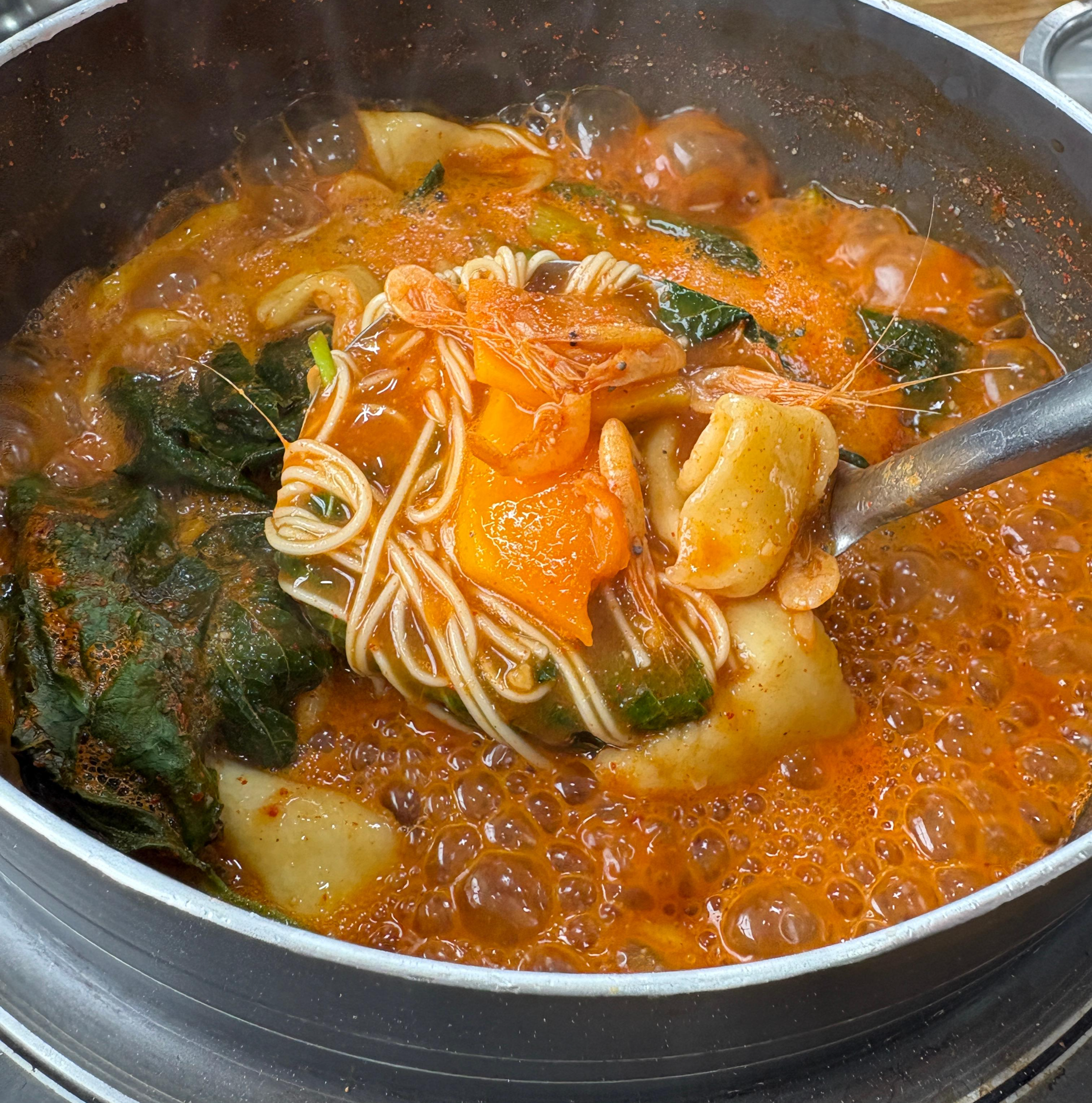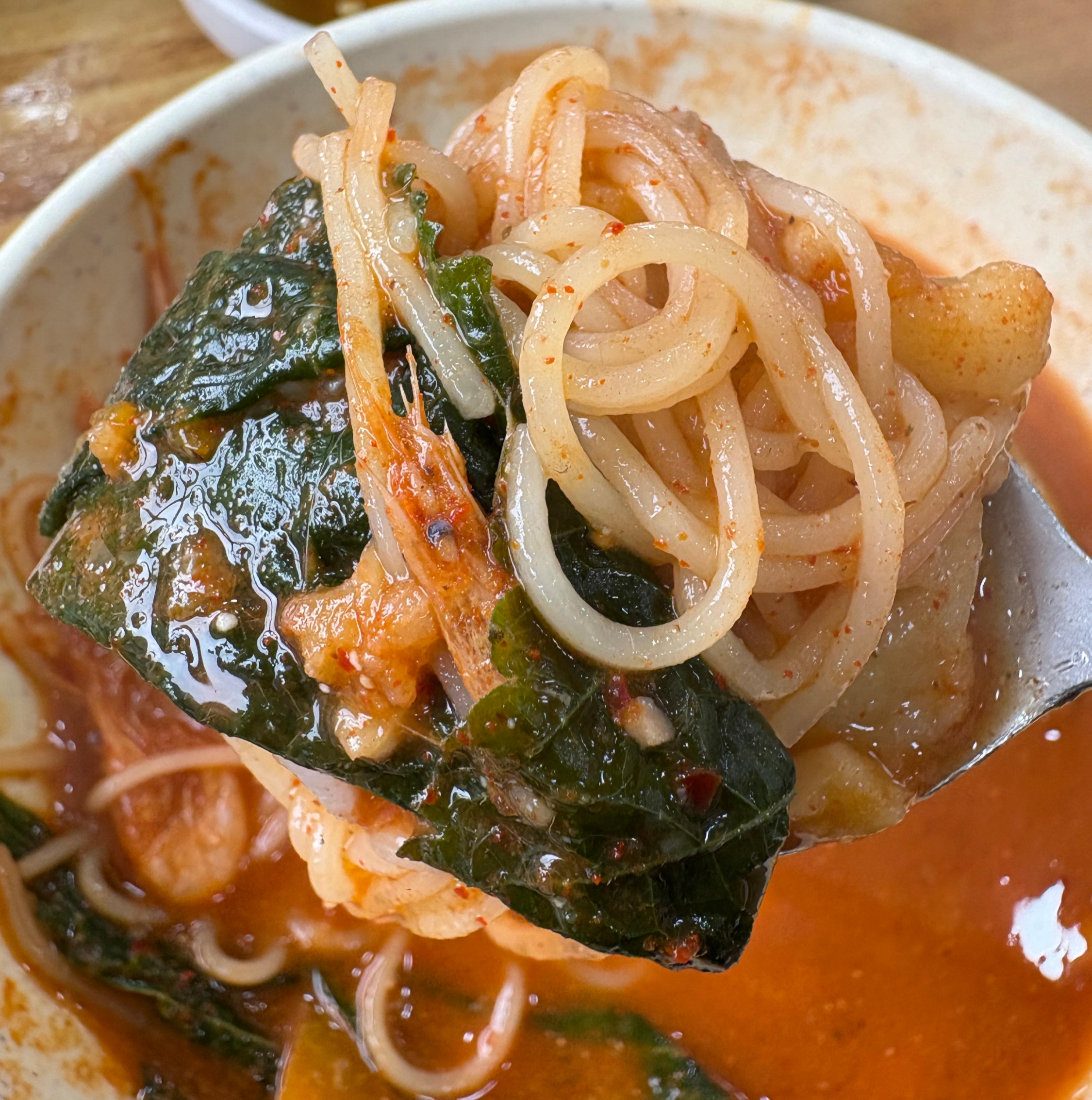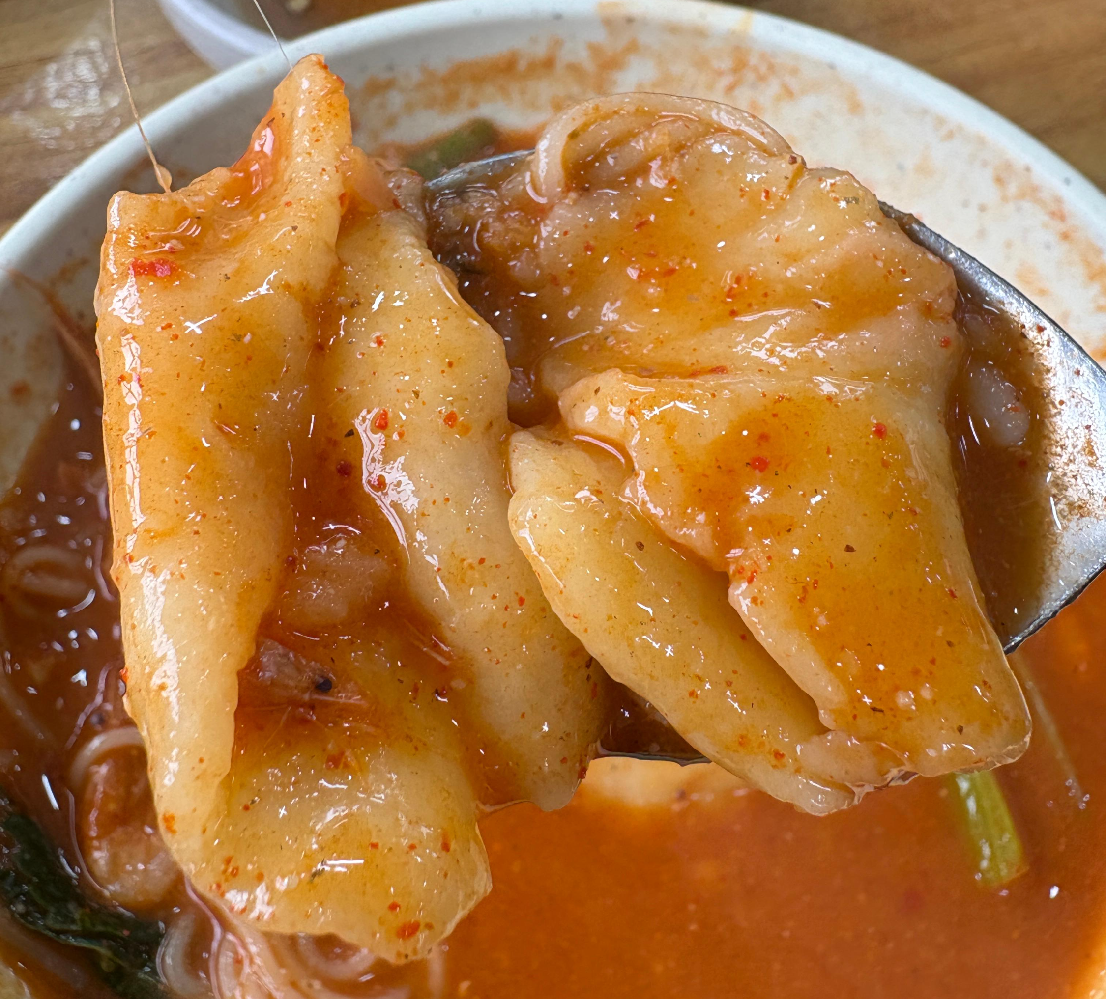 쫀득 수제비와 걸쭉하고 매콤한 국물!