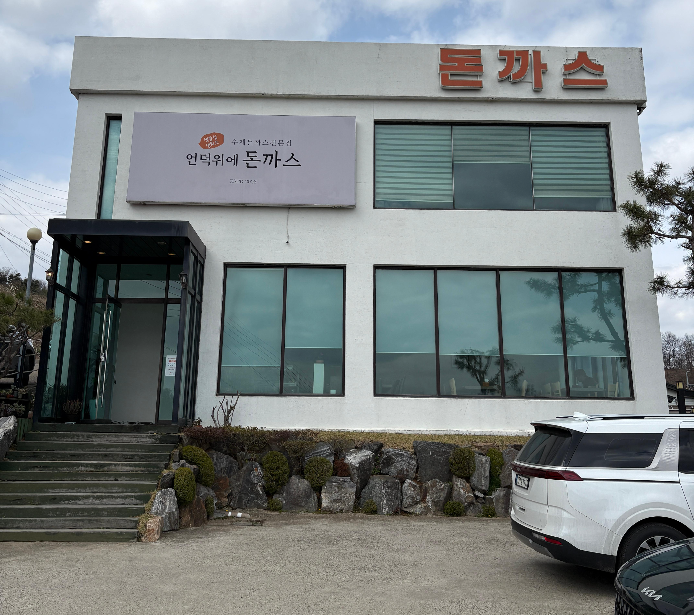 진짜 언덕위에 위치하고 있는 깨끗한 2층 건물 모습의 돈까스집을 방문했어요. 언덕아래에 돈까스집 하나 개업할까요? ㅎㅎ