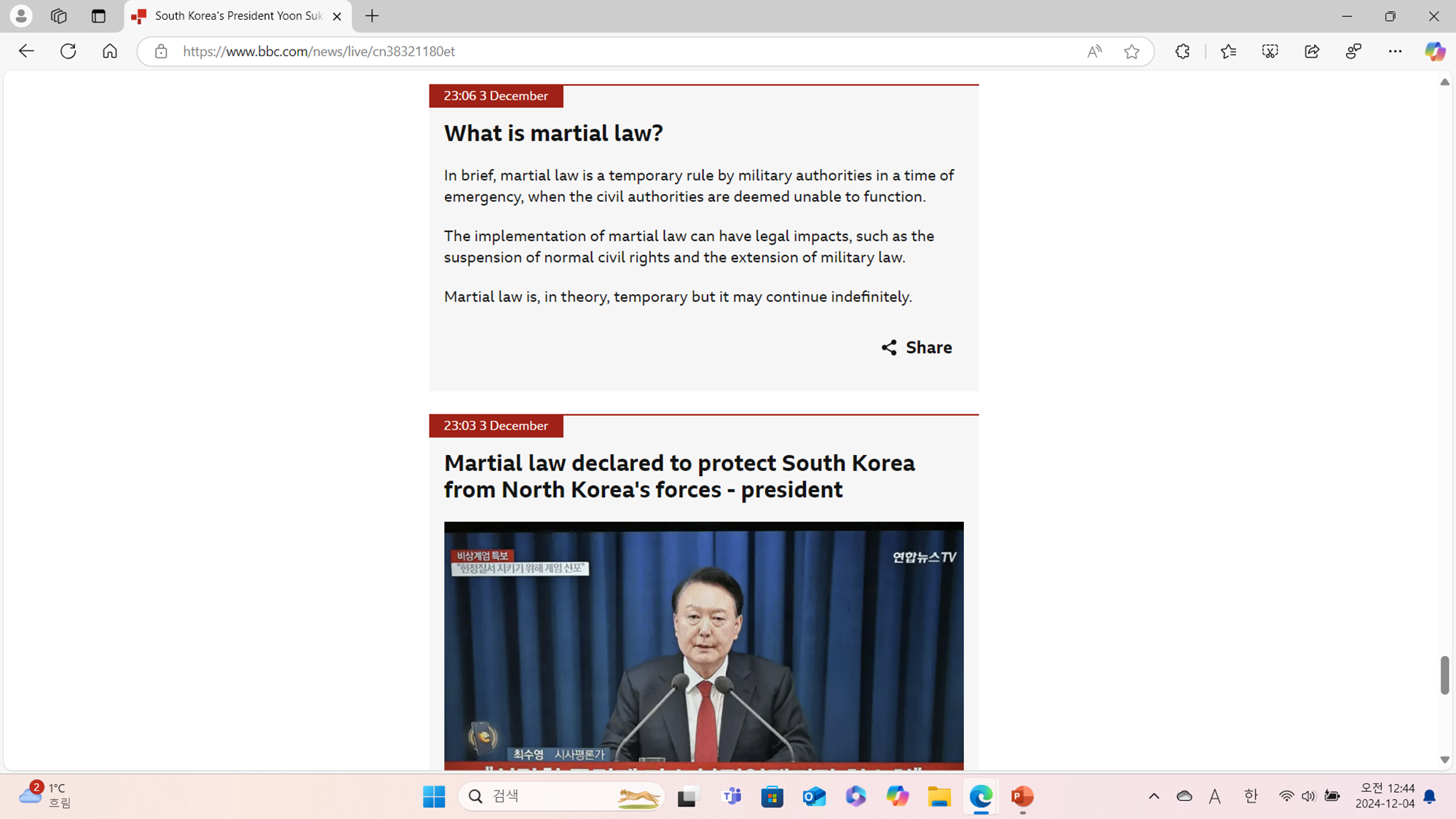 BBC는 계엄령 선포의