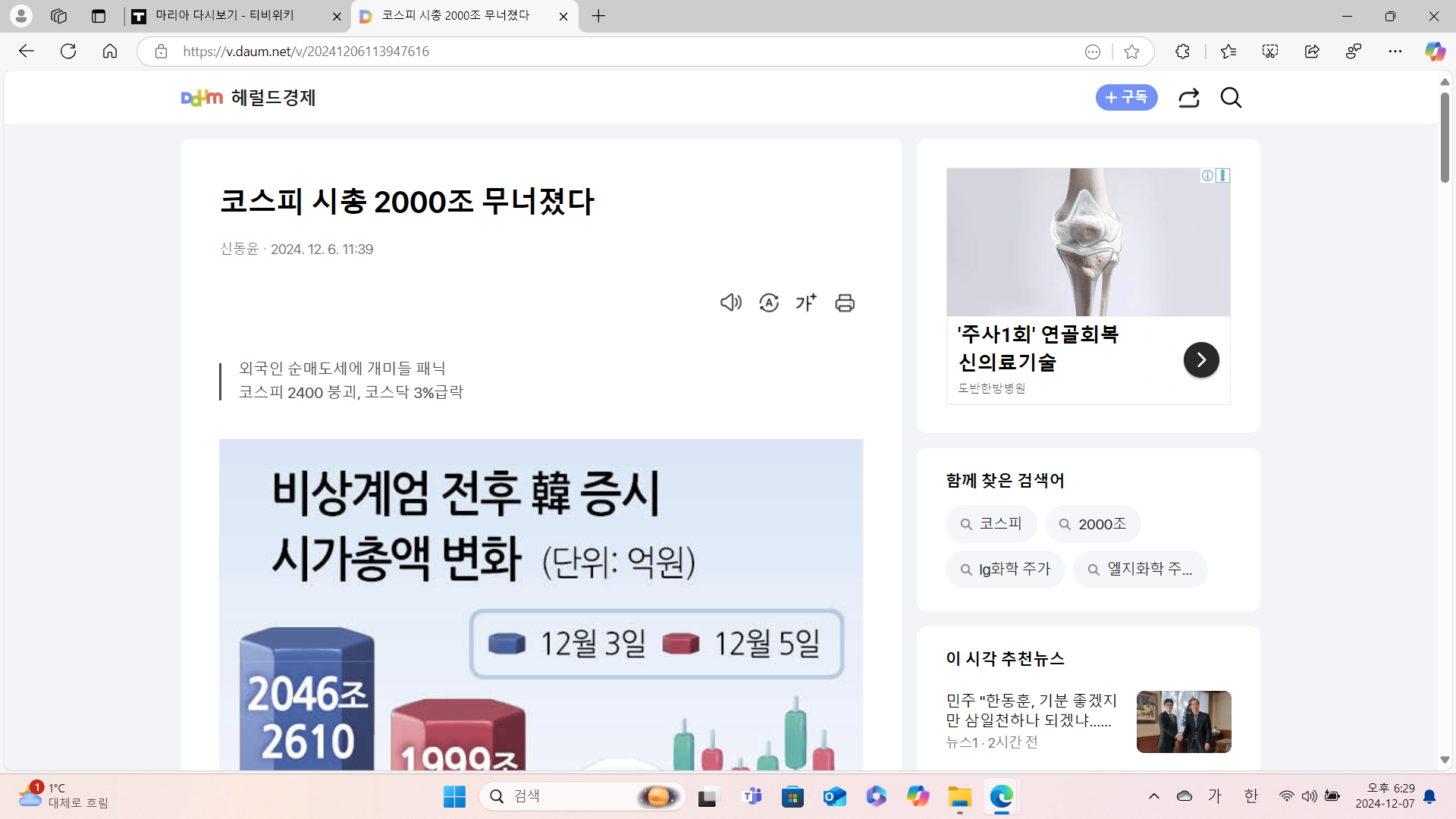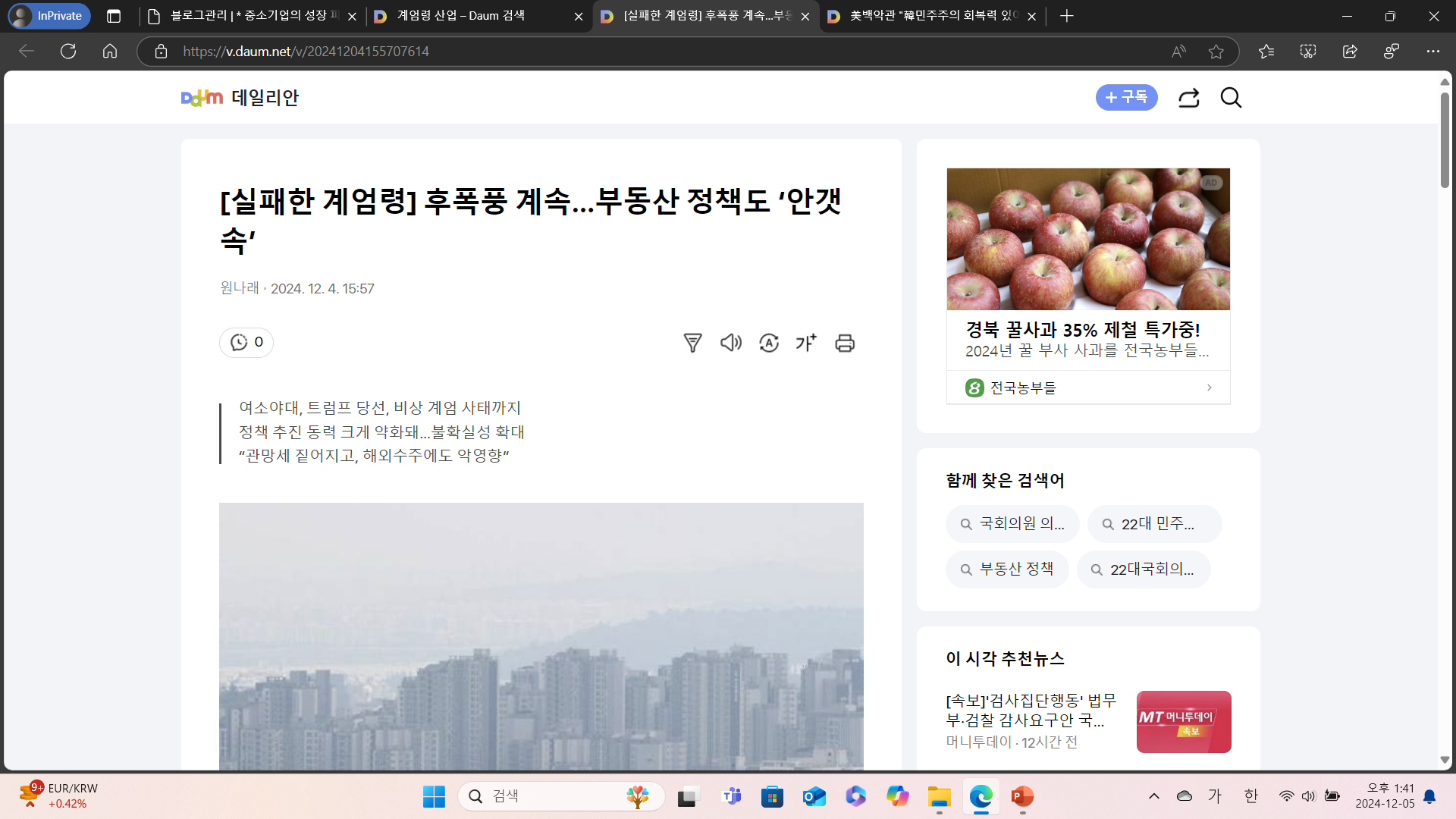 "계엄령 선언으로 OO에 미친 경제적손실 추정"