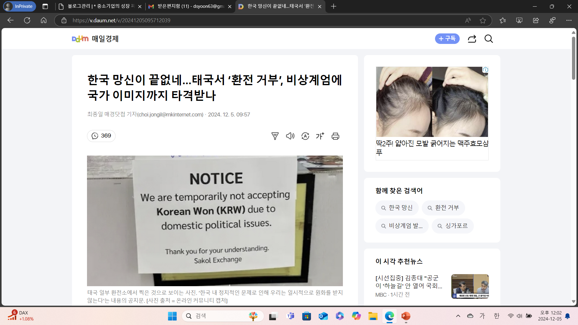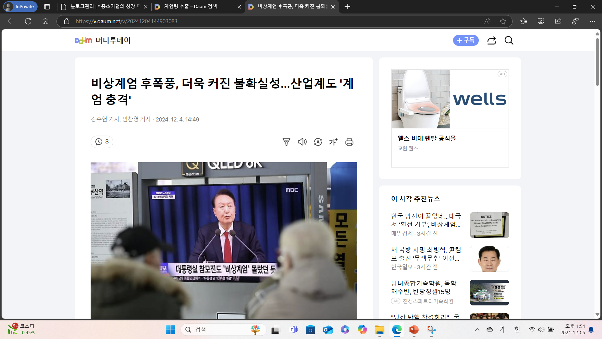 윤석열대통령 원인 (계엄령) ---> 한국 '미래불확실성' --> OO에 피해발생