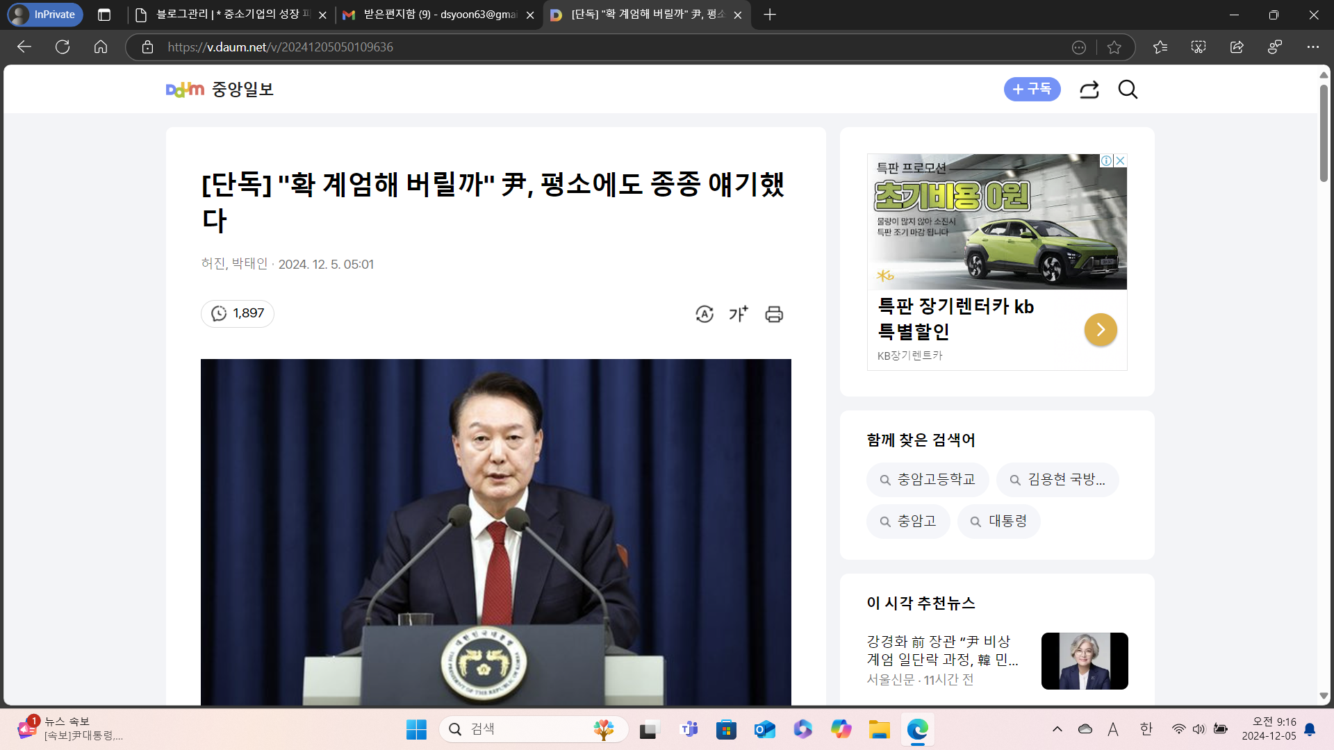 [계엄령선포 5탄] 계엄해제 이후 윤석열대통령의 발언과 행동들