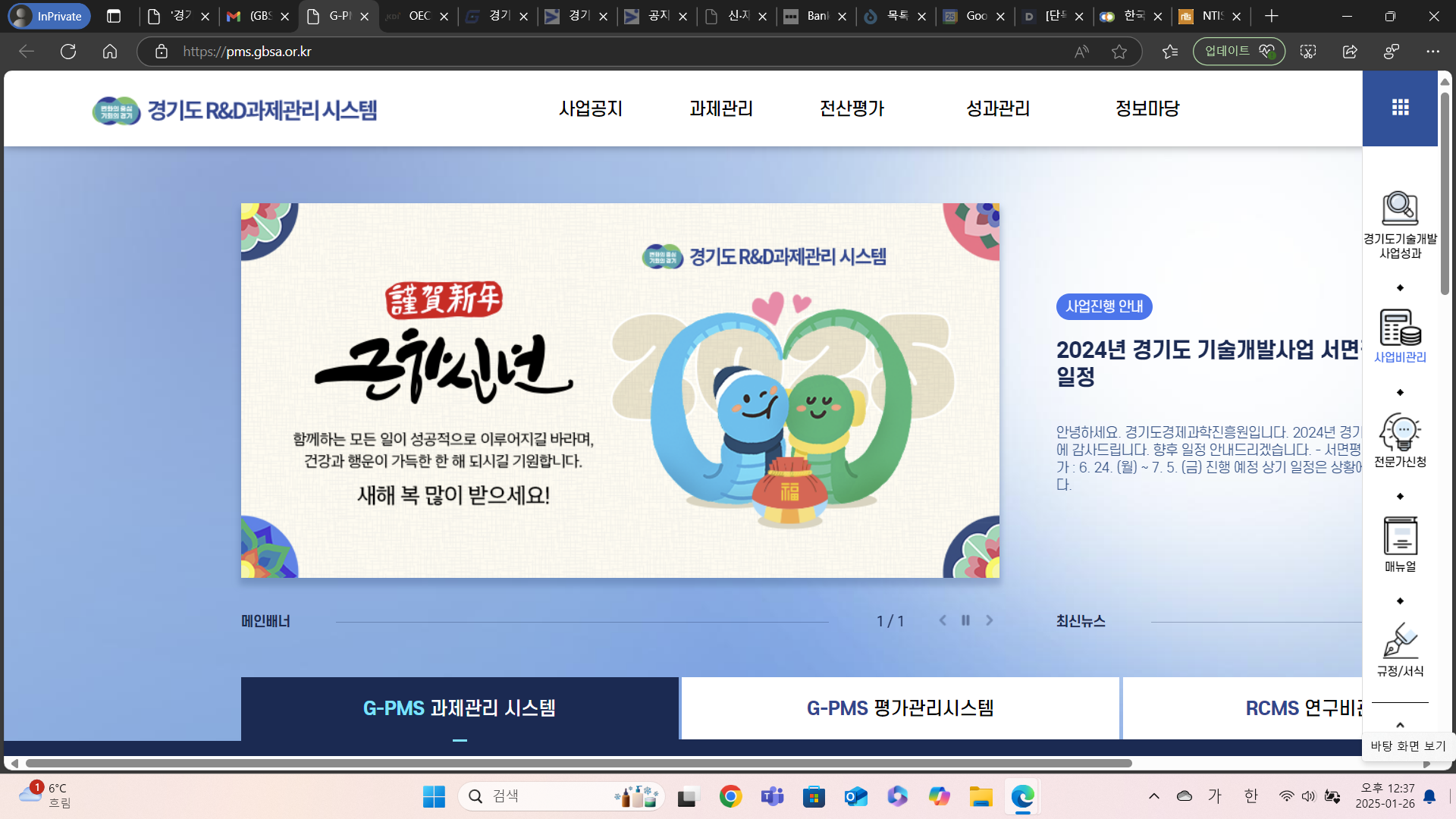 PMS는 경기도 R&D 과제관리시스템입니다. 경기도 R&D 과제는 이 포털에서 관리합니다.