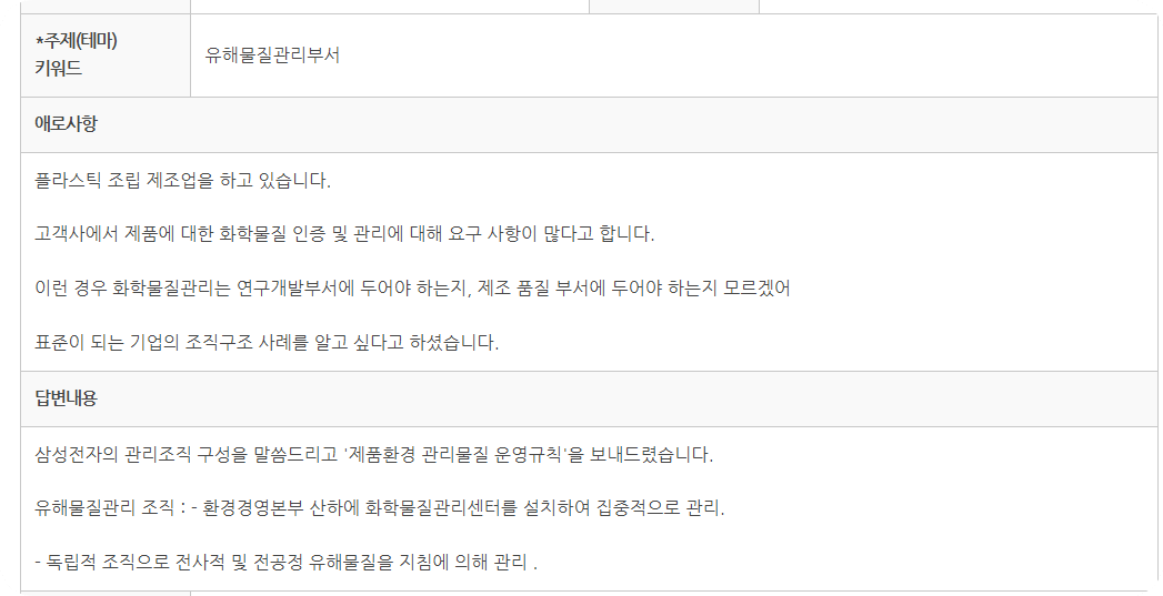 '유해화학물질 관리부서'를 어느 조직 위치에 두어야 하나요?