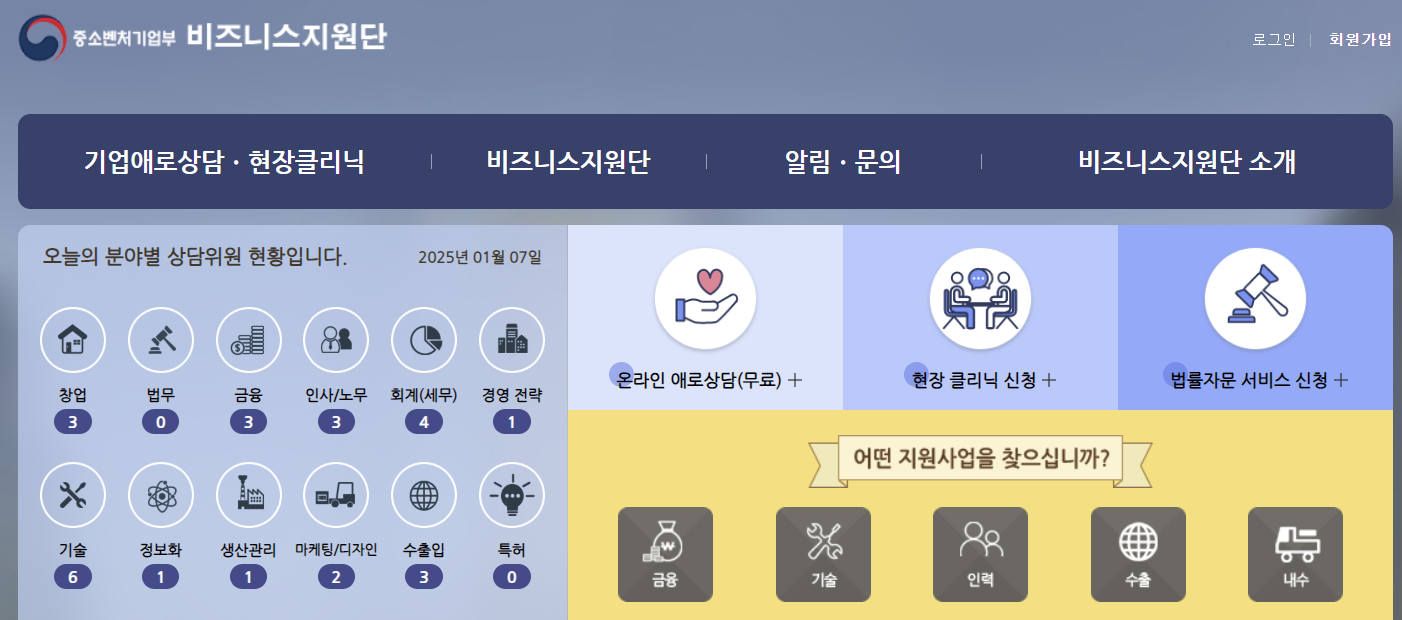 비즈니스지원단 홈페이지에서 추출하여 상담 내용이 어떤 것인지 쭉 살펴 보았어요.