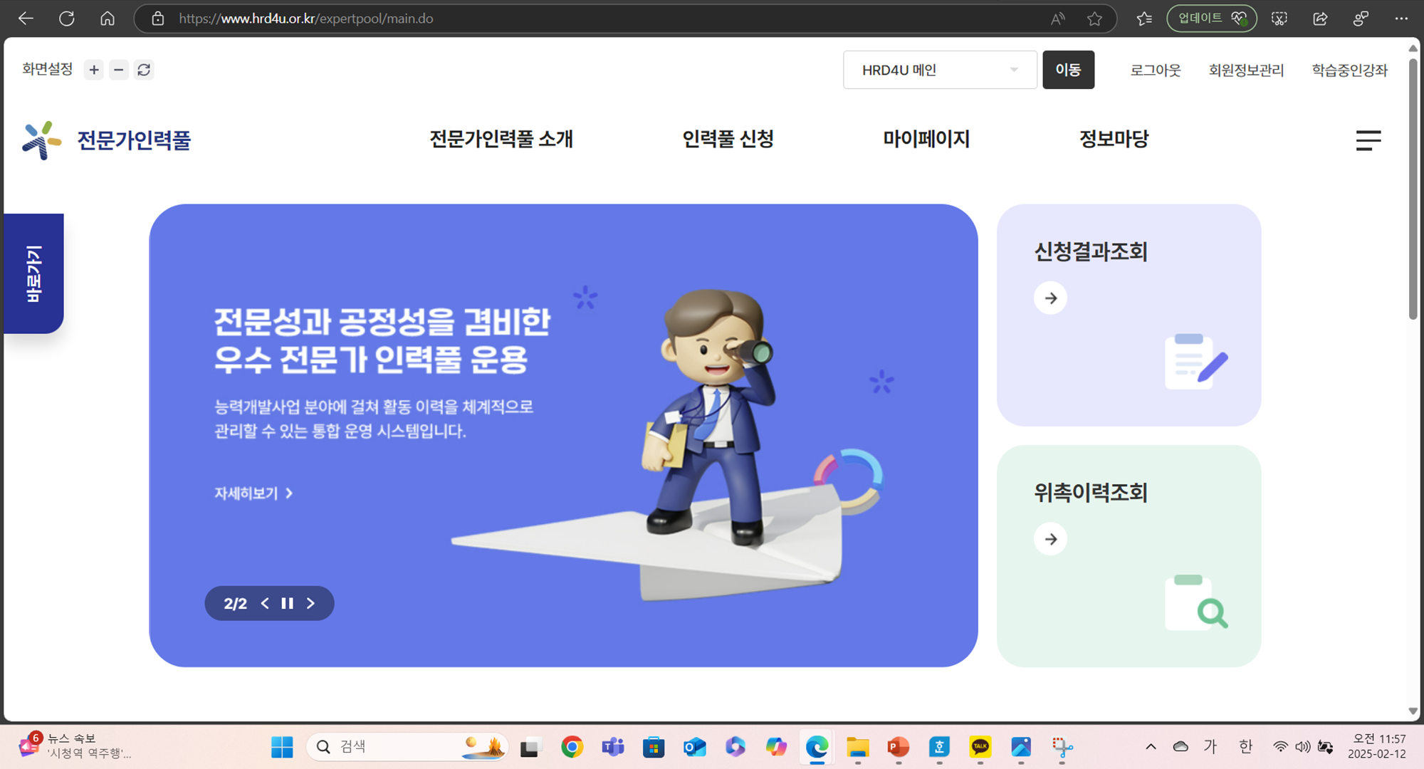 | 신청사이트 | HRD4U 전문가 인력풀의 '숙련기술 전문가 신청' |