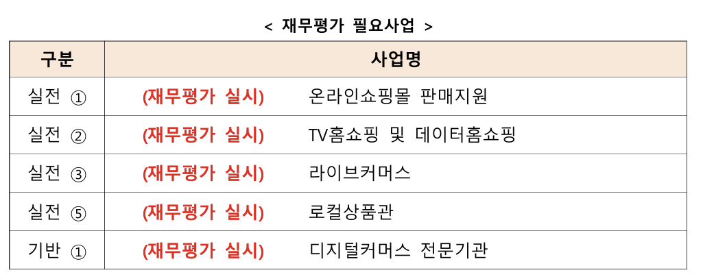 국회의원 한마디의 영향력이란~~ 서의원은 " 재무 상태를 온라인 쇼핑몰 평가 요소에 넣지 않은 것이 문제"라고 목소리를 높혔다. 따라서, 판판대로 2025년 사업에 '재무평가'를 사전 실시하는 사업 5개가 생겼습니다!