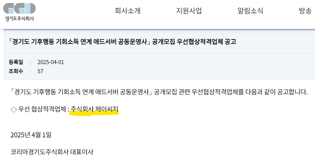 ** 공동운영사 : 경기도 기후행동 기회소득 플랫폼과 연동하여 애드서버 관리·운영 및 유지보수 등의 업무를 수행하기 위해 선정된 사업자