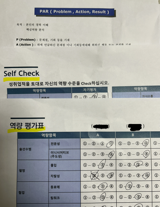 4) 조원들은 역량평가지에 평가