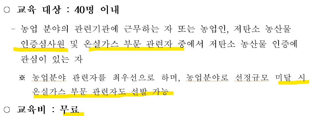 교육명 : 저탄소 농산물 인증제 농업인 교육