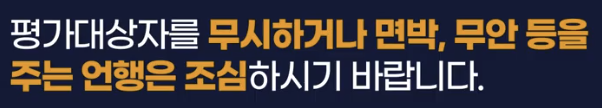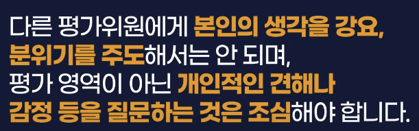 | 4) 평가위원의 품격을 높이는 행동지침 | ∙ 부적절한 태도 관련 주의사항, 민원사례 ∙ 심사평가자료 및 평가결과 유출 유의안내 등 |