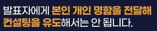 ** 평가위원들은 일반적으로 서로 처음 만나는 사이이며 평가전 명함을 서로 주고 받는 행동은 하지 않습니다.