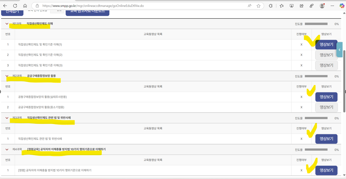 직접생산확인 조사원은 매년 영상 강의 를 수강하고 시험 성적 60점 이상되어야 차년(2026년)까지 임기가 연장됩니다.