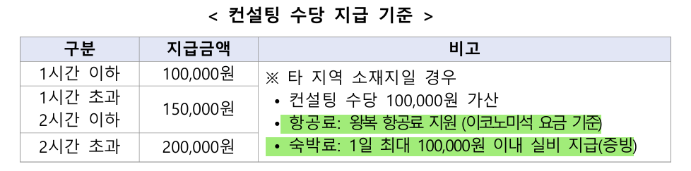 2. 항공료와 숙박료를 실비 제공함.