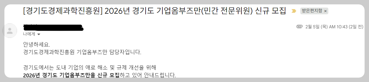 경기도경제과학진흥원에서 2025년에 이어 2026년 '기업옴부즈만'을 공개 모집한다고 합니다. 작년에 지원했고 전화 인터뷰도 한 것 같은데 미 위촉된 사업입니다. 다시 시도해 볼까요?