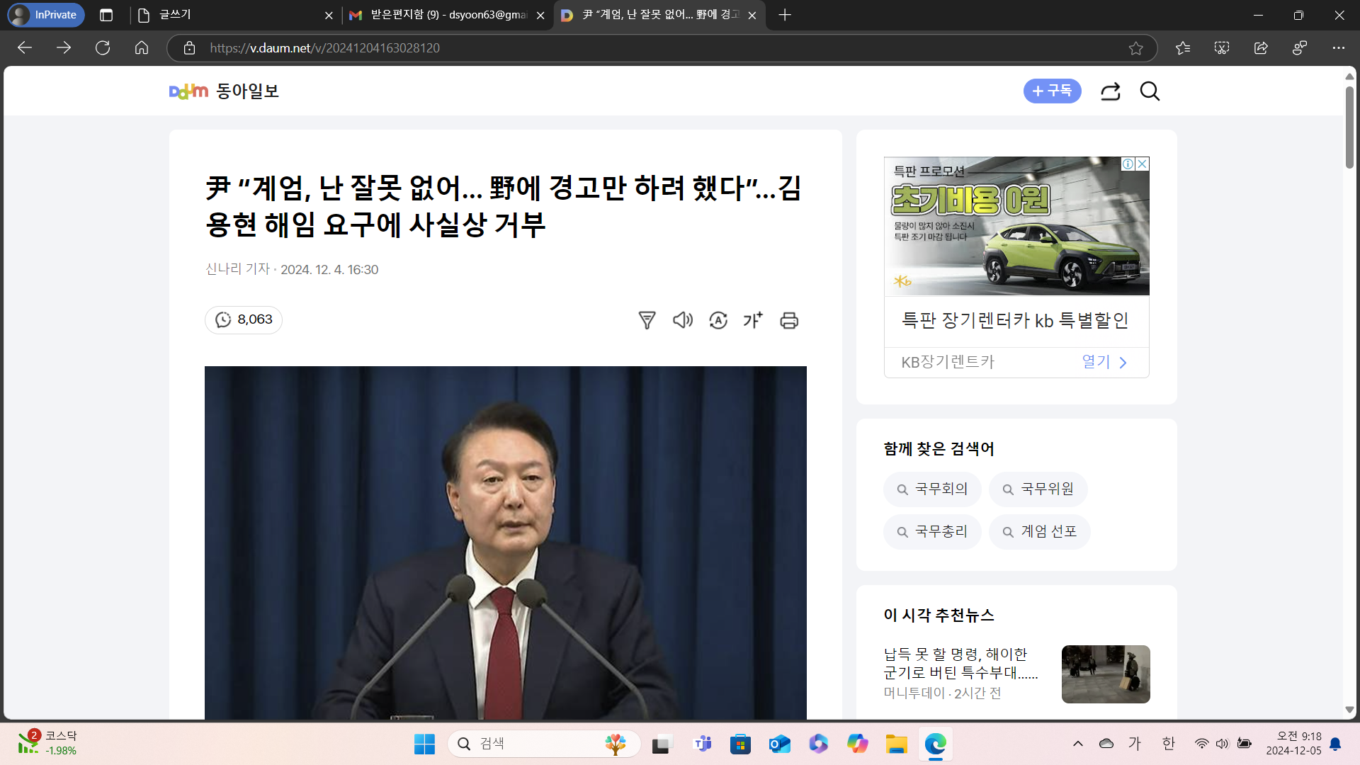 [계엄령선포 5탄] 계엄해제 이후 윤석열대통령의 발언과 행동들